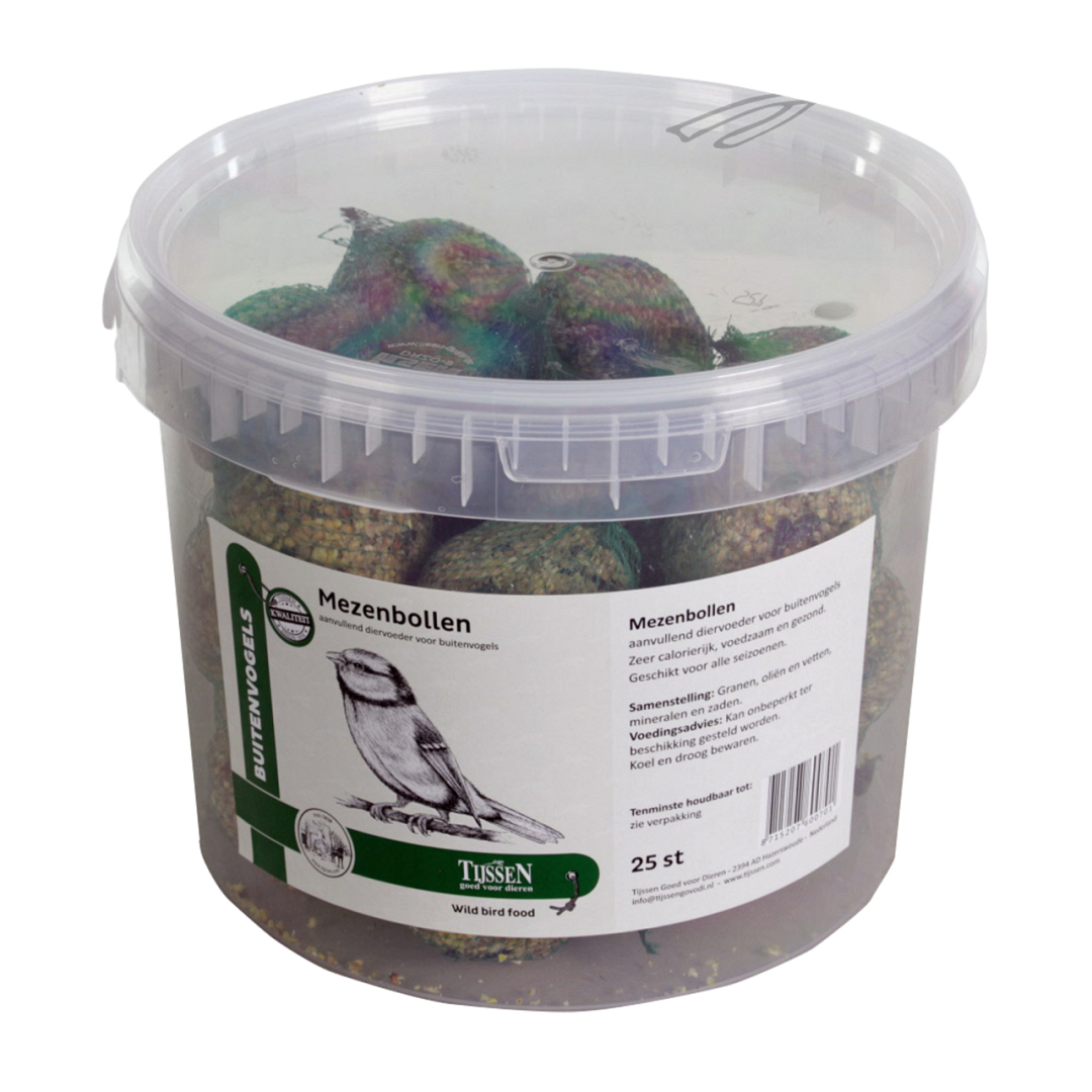 Mezenbollen voor het bijvoeren van buitenvogels.