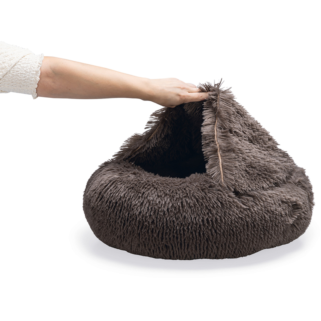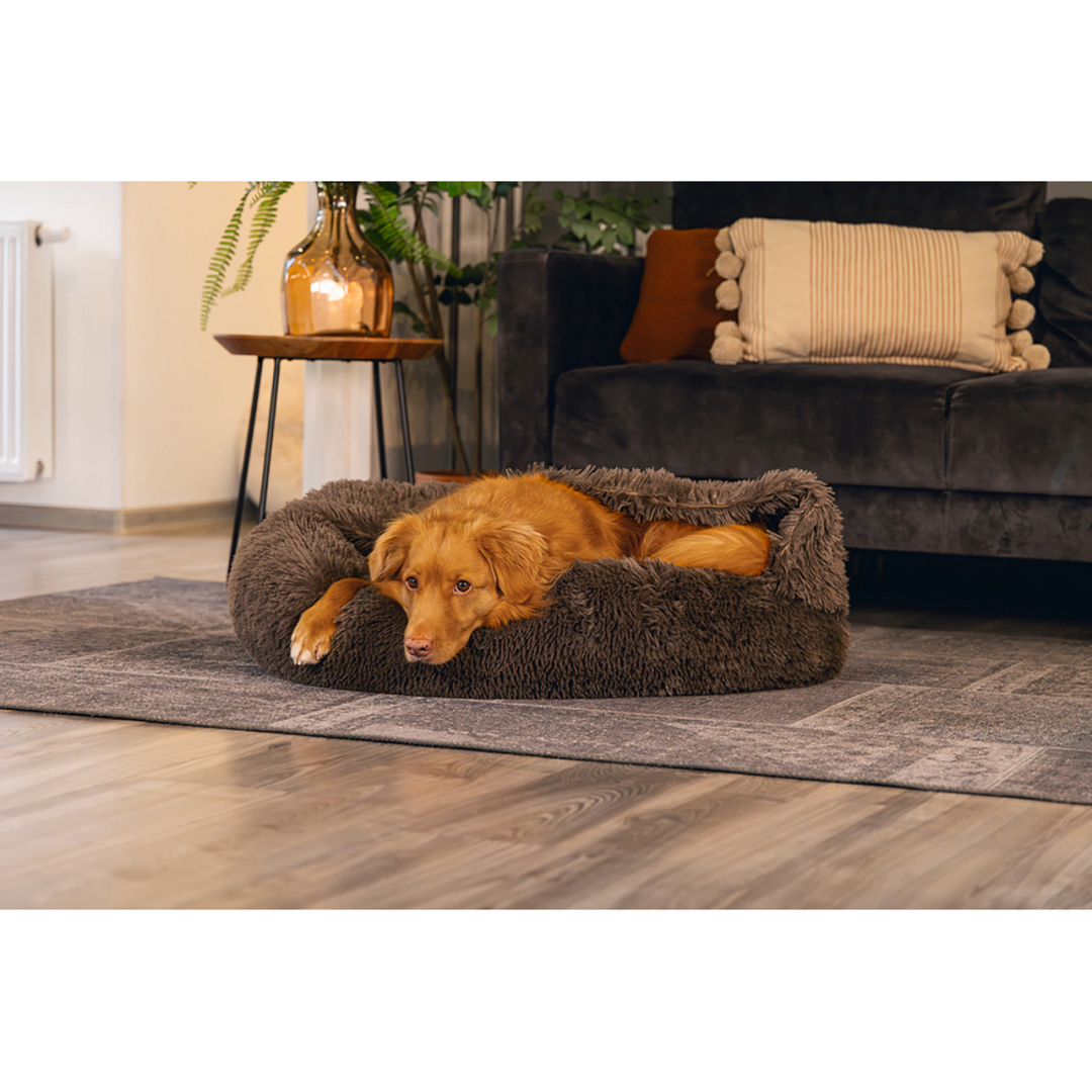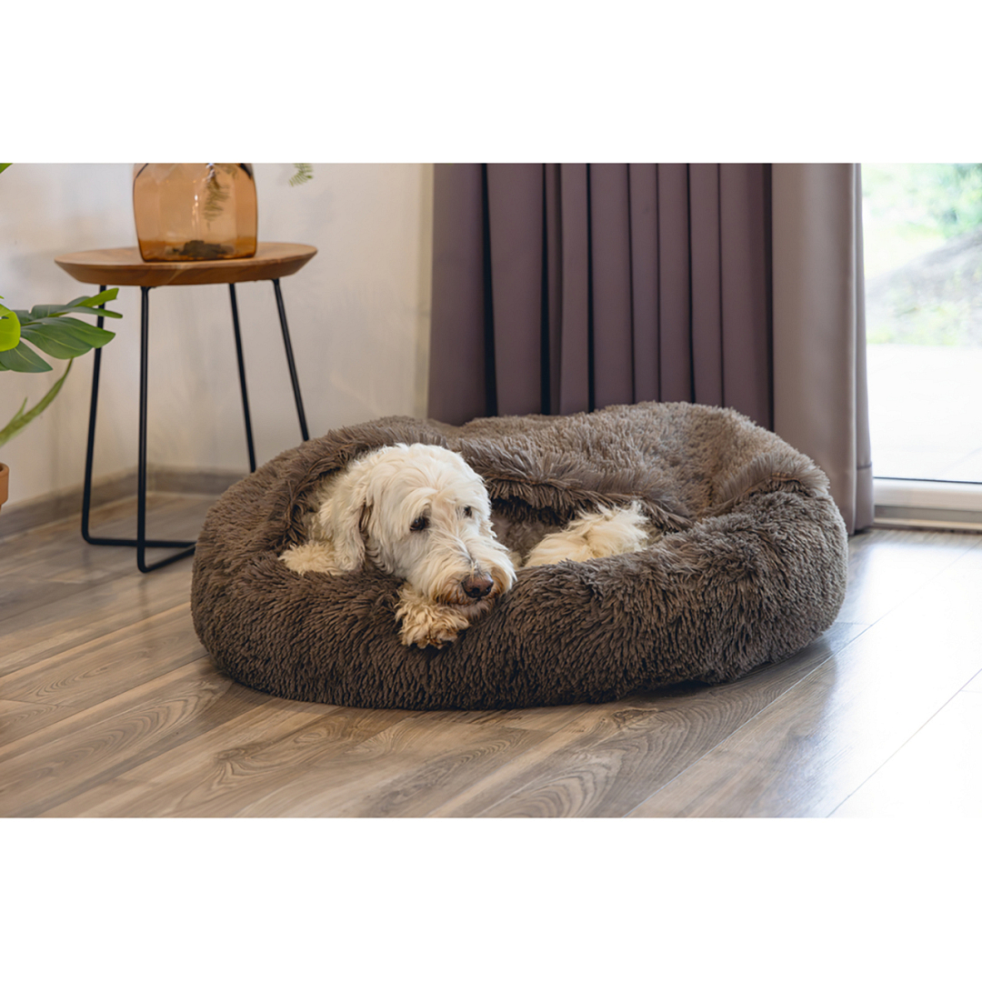 Heerlijke pluchen mand met geïntegreerde slaapzak voor als jouw hond het koud heeft. Kan in zijn geheel in de wasmachine.