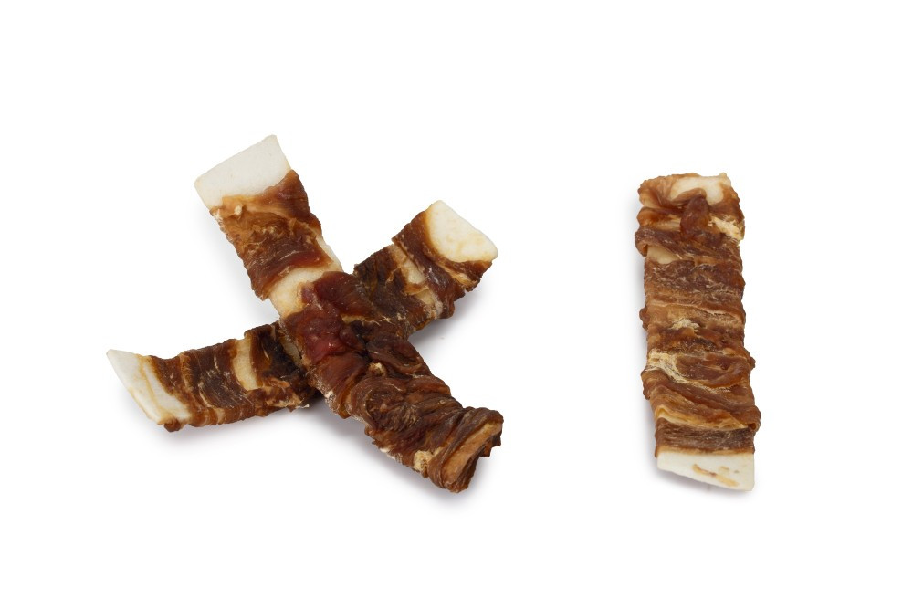 Kauwsnack van eend met rund, met extra veel smaak.