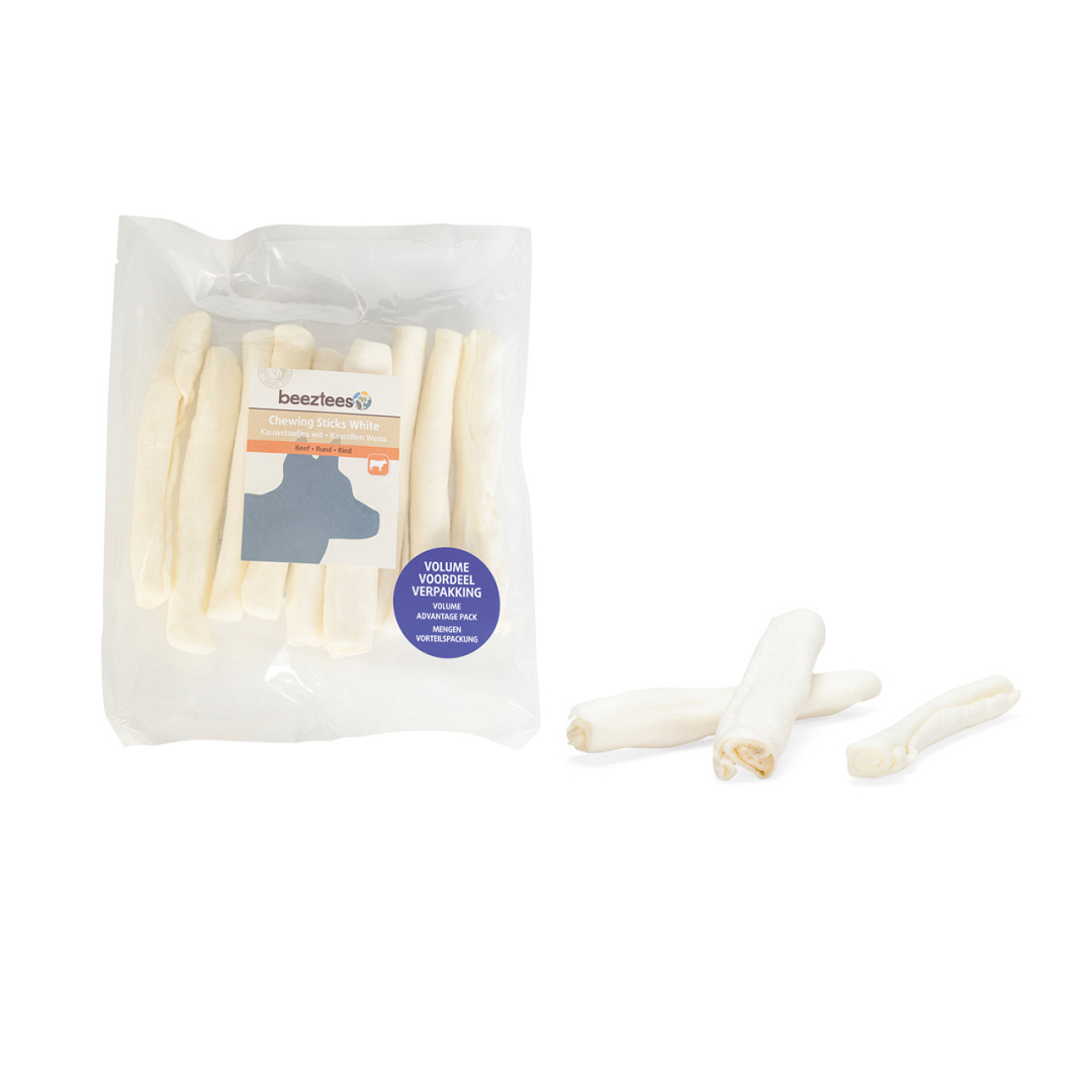 Overheerlijke Beeztees kauwstaafjes van runderhuid. Deze snack zal met veel plezier door jouw hond onder handen genomen worden. Ca. 20 minuten per dag kauwen werkt gebitsreinigend. Te geven als beloning, of gewoon als tussendoortje.