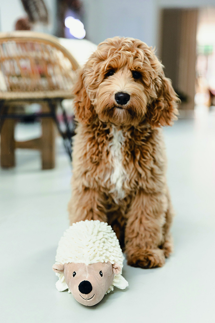 Heerlijk zachte hondenknuffel in de vorm van een egel, om mee te spelen of tegenaan te kruipen. Gemaakt van gerecycled materiaal. Geluidloos.