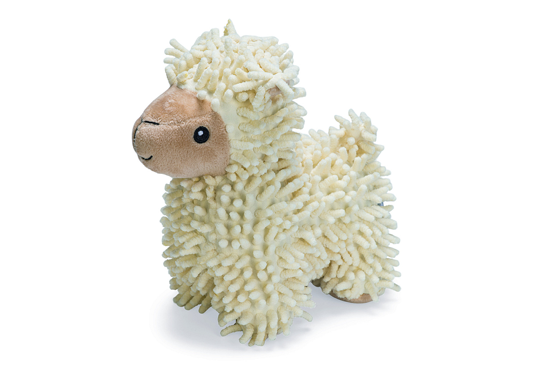 Heerlijk zachte hondenknuffel in de vorm van een schaapje, om mee te spelen of tegenaan te kruipen. Gemaakt van gerecycled materiaal. Geluidloos.