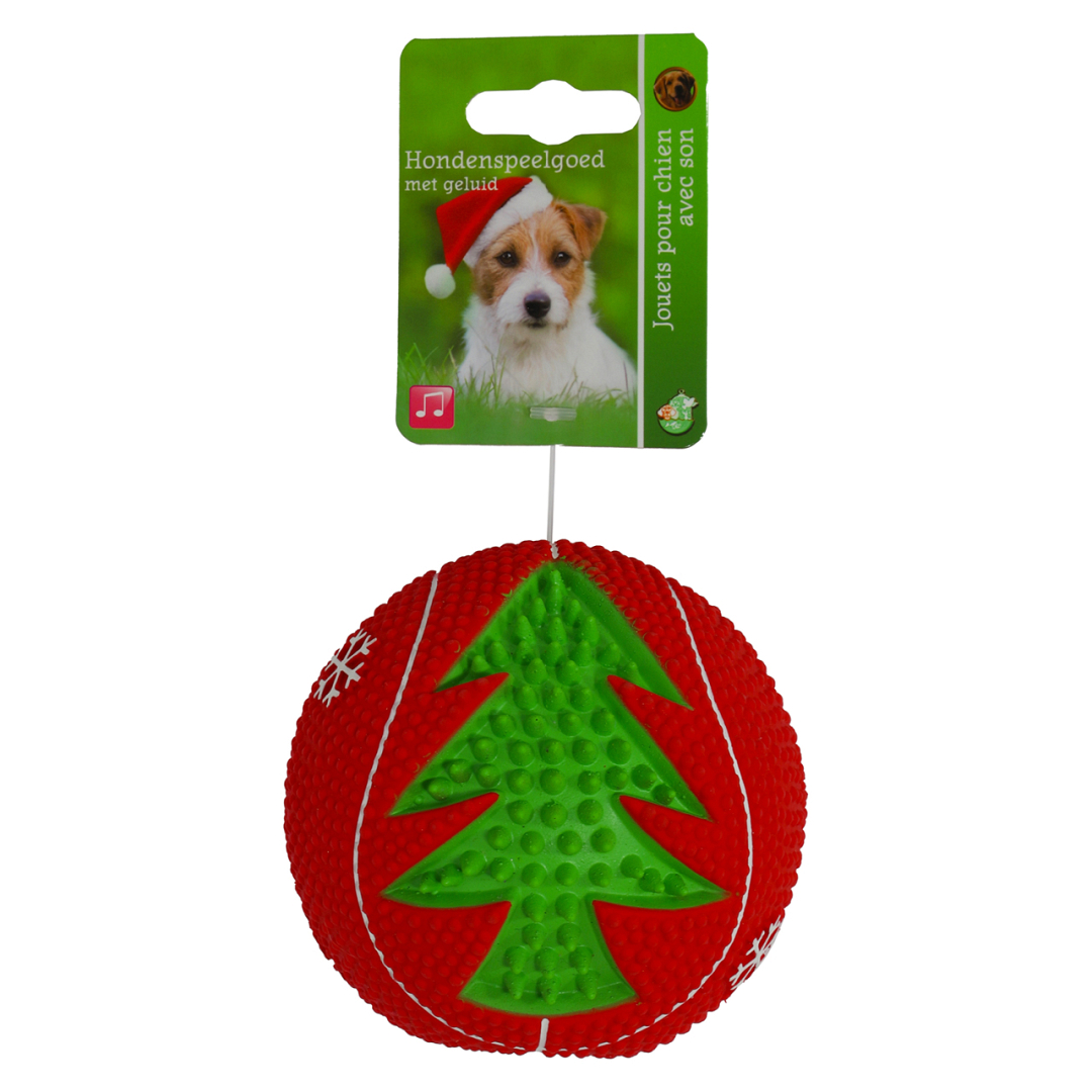 Latex kerstbal voor je hond, om samen mee te spelen.