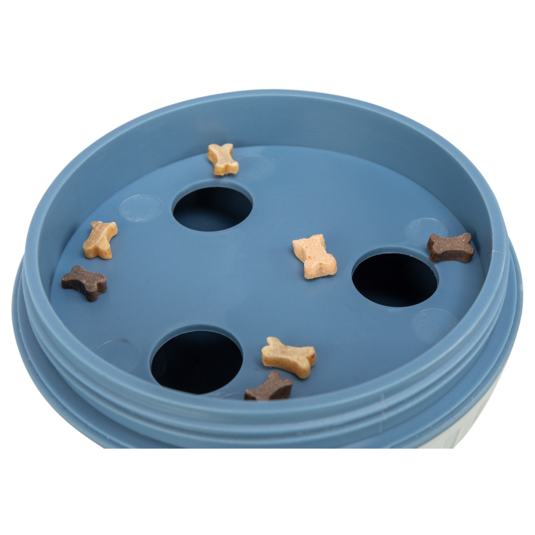 Het Trixie hondenspeelgoed Snackbal houdt jouw hond wel even bezig. Stop wat lekkers in de bal en jouw hond moet het er al rollend uit zien te krijgen. Met uitneembaar doolhof en verstelbare opening om het niveau aan te passen. De kunststof (TPR) bal rolt fluisterstil.