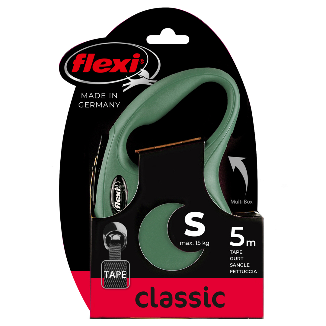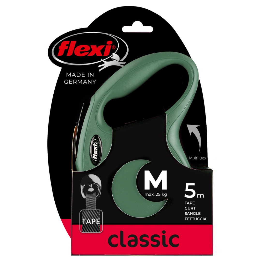 Flexi Rollijn Classic met Band Olijfgroen 5 mtr