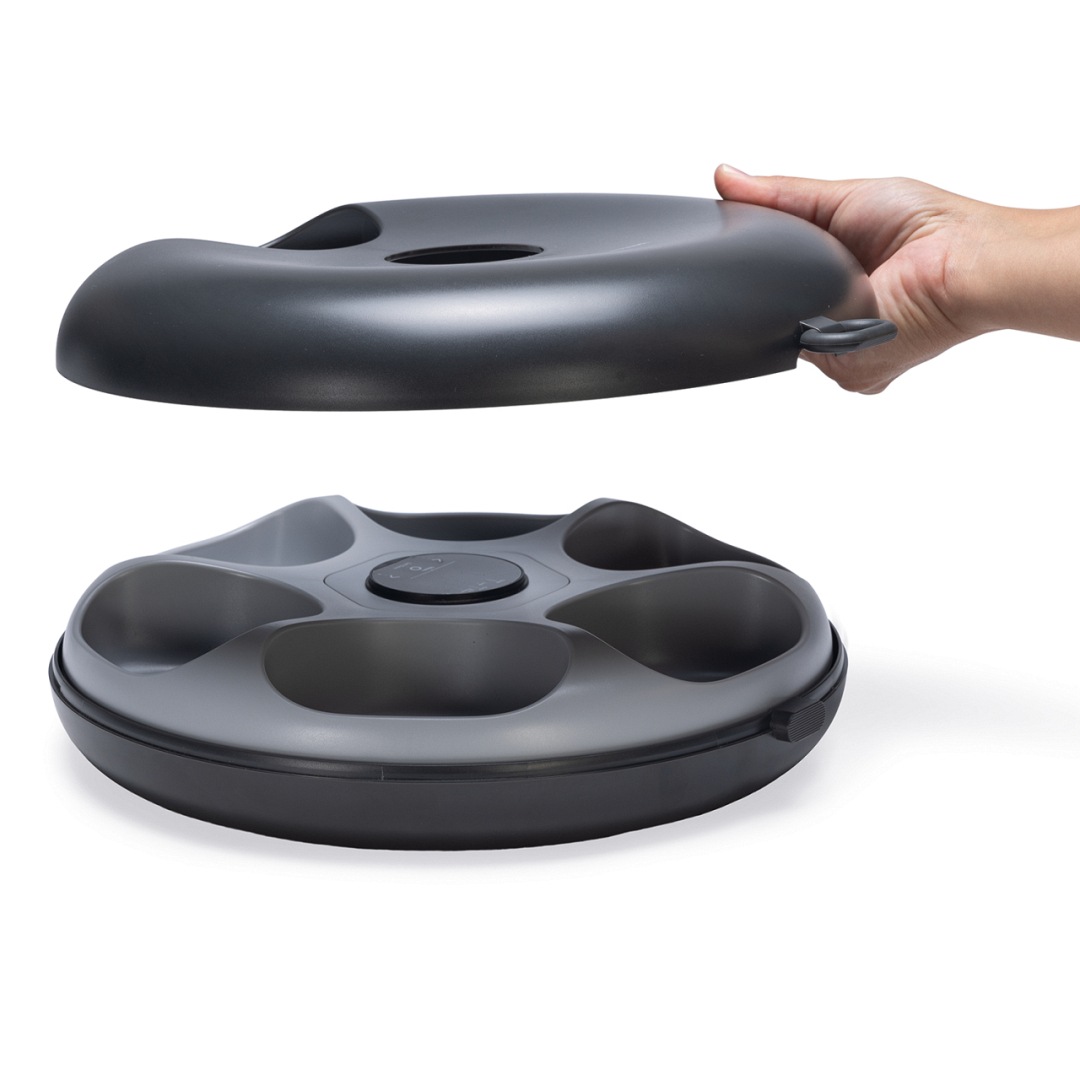Automatische voerbak voor kat of kleine hond. Geschikt voor zowel droog- als natvoer en tot 6 maaltijden per dag.