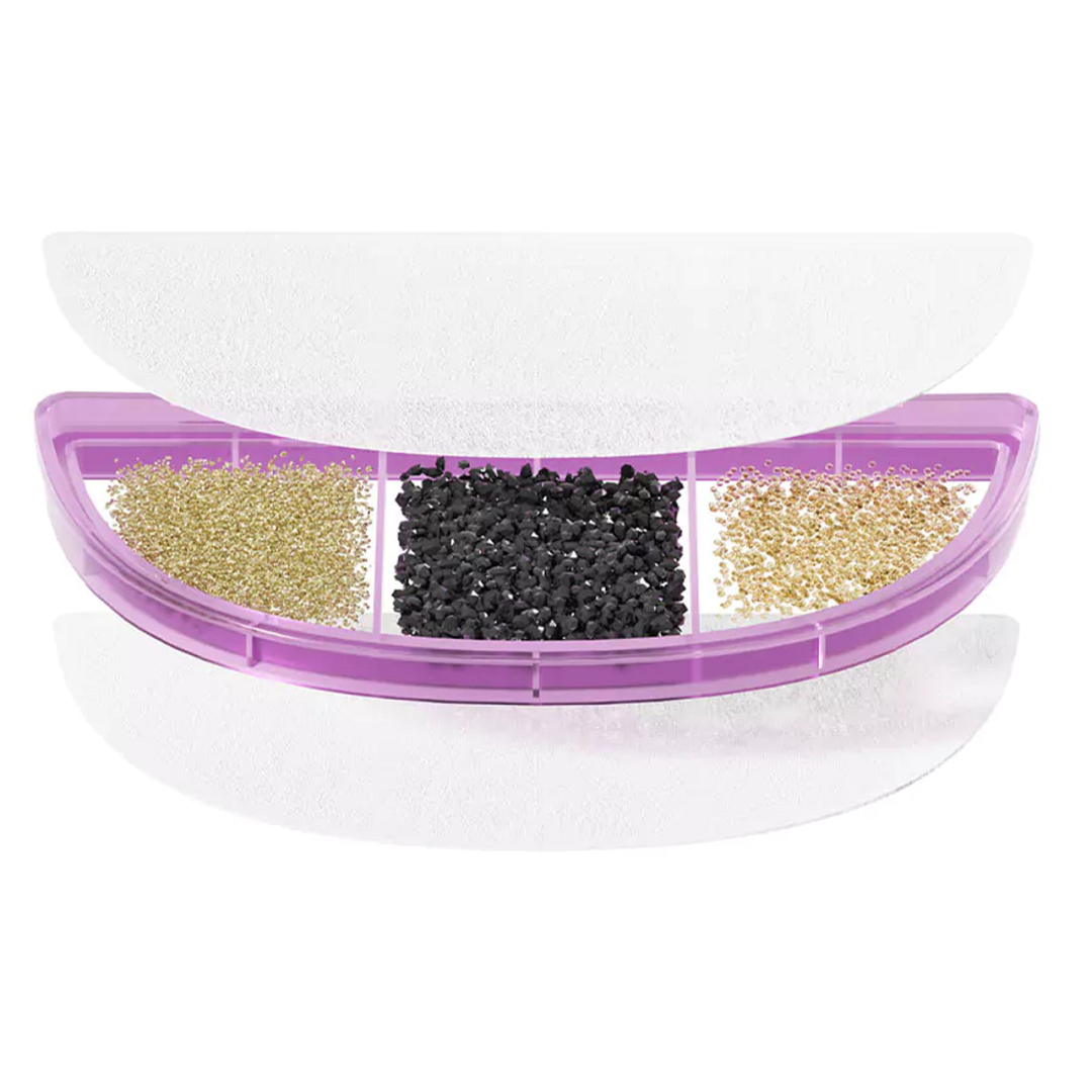 De waterfilter heeft een meervoudig filtersysteem om schoon water voor je huisdier te garanderen. Zo bestaan deze filter uit 3 compartimenten en eenspeciale pp-katoenen filterlaag. De compartimenten in de filter zijn gevuld met:
