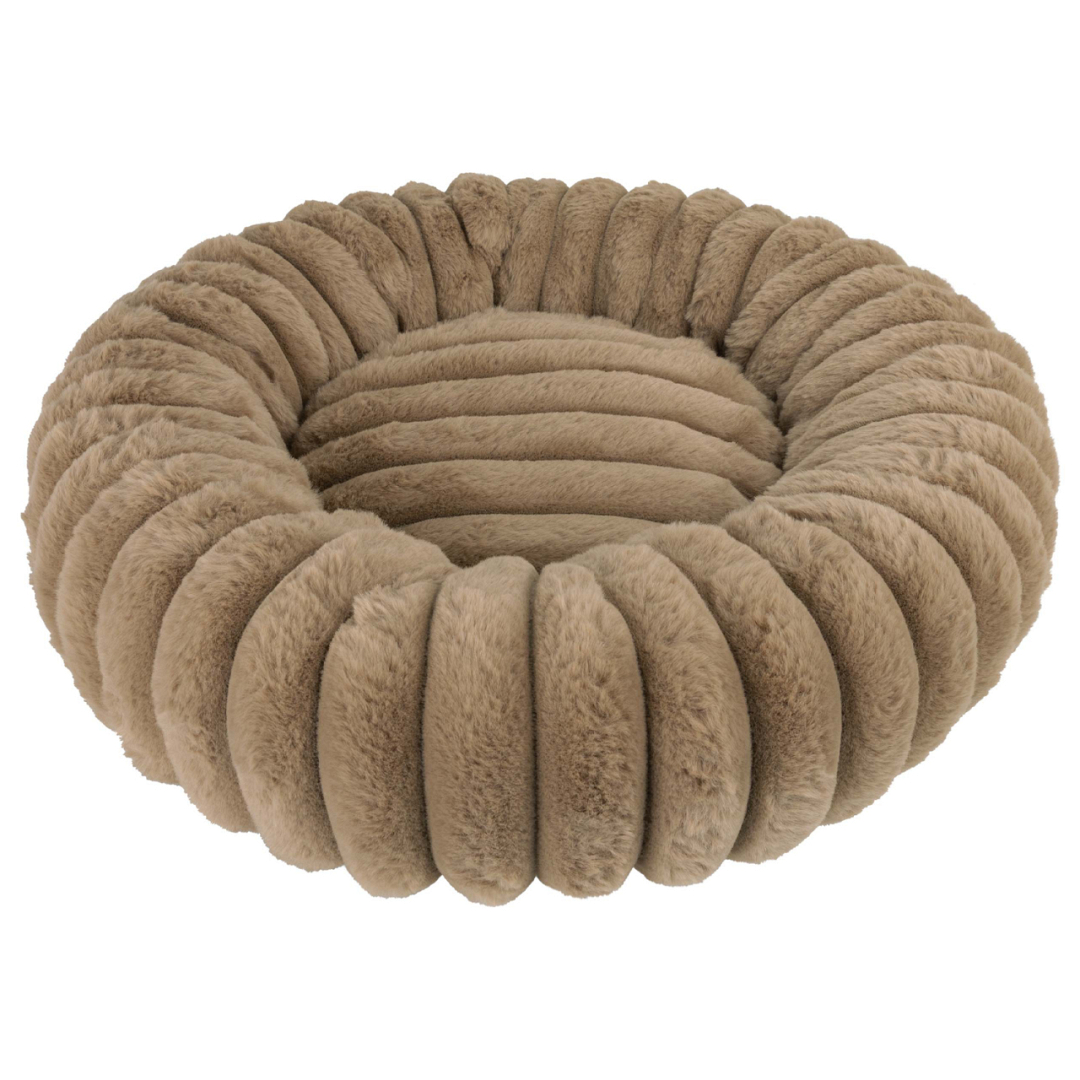 Ronde kattenmand van zacht ribfluweel en zachte pluche met een luxe uitstraling.