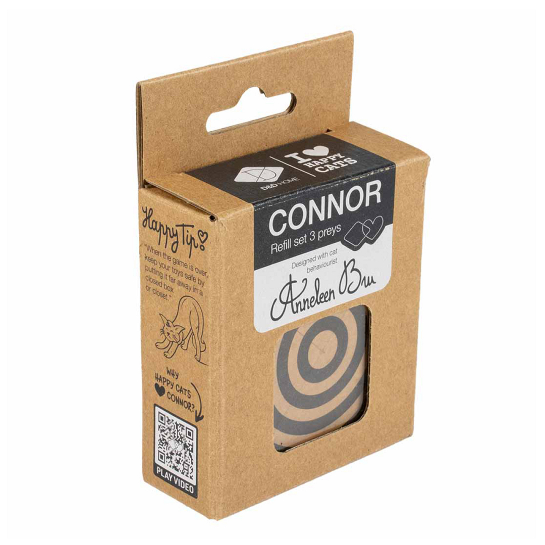 Deze Connor navulling Helix met kattenspeeltjes van D&D Home | I Love Happy Cats is ontworpen in samenwerking met kattengedragstherapeut Anneleen Bru en is ideaal voor extra jaagplezier. Deze prooien hebben een ronde vorm en zijn voorzien van prints gebaseerd op optische illusie. Vervang de prooi af en toe om je kat geïnteresseerd te houden of als de vorige prooi aan vervanging toe is. De prooien zijn makkelijk aan de Connor-hengel te bevestigen. Happy Tip! Als het spelletje gedaan is, houd je de speeltjes veilig door ze ver weg in een gesloten doos of kast op te bergen.