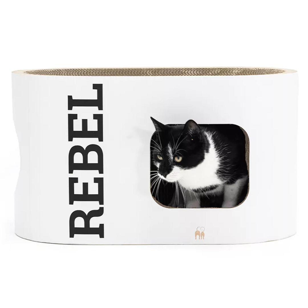 Zoek je een makkelijk te verplaatsen en duurzame krabpaal waar je kat blij van wordt? Dan is het Petrebels krabkarton Scratch 'n Rebel Ruby 60 echt wat voor jullie. Want deze klein-maar-fijne krabton is gemaakt van gerecycled karton, gaat lang mee en heeft alles in huis waar katten van houden. Aan dit kartonnen krabmeubel kan je kat eindeloos krabben, maar je kat kan er ook lekker op gaan liggen of zich erin verstoppen. De stevige structuur van het karton voelt fijn aan en is ideaal voor katten die soms ook even horizontaal willen krabben, dat is namelijk goed voor hun spieren, houdt hun nagels schoon én zorgt voor de nodige ontspanning. Ruby is ideaal voor katten die zich soms even willen terugtrekken en past overal in huis! Afmetingen: 60 x 32 x 34 cm.