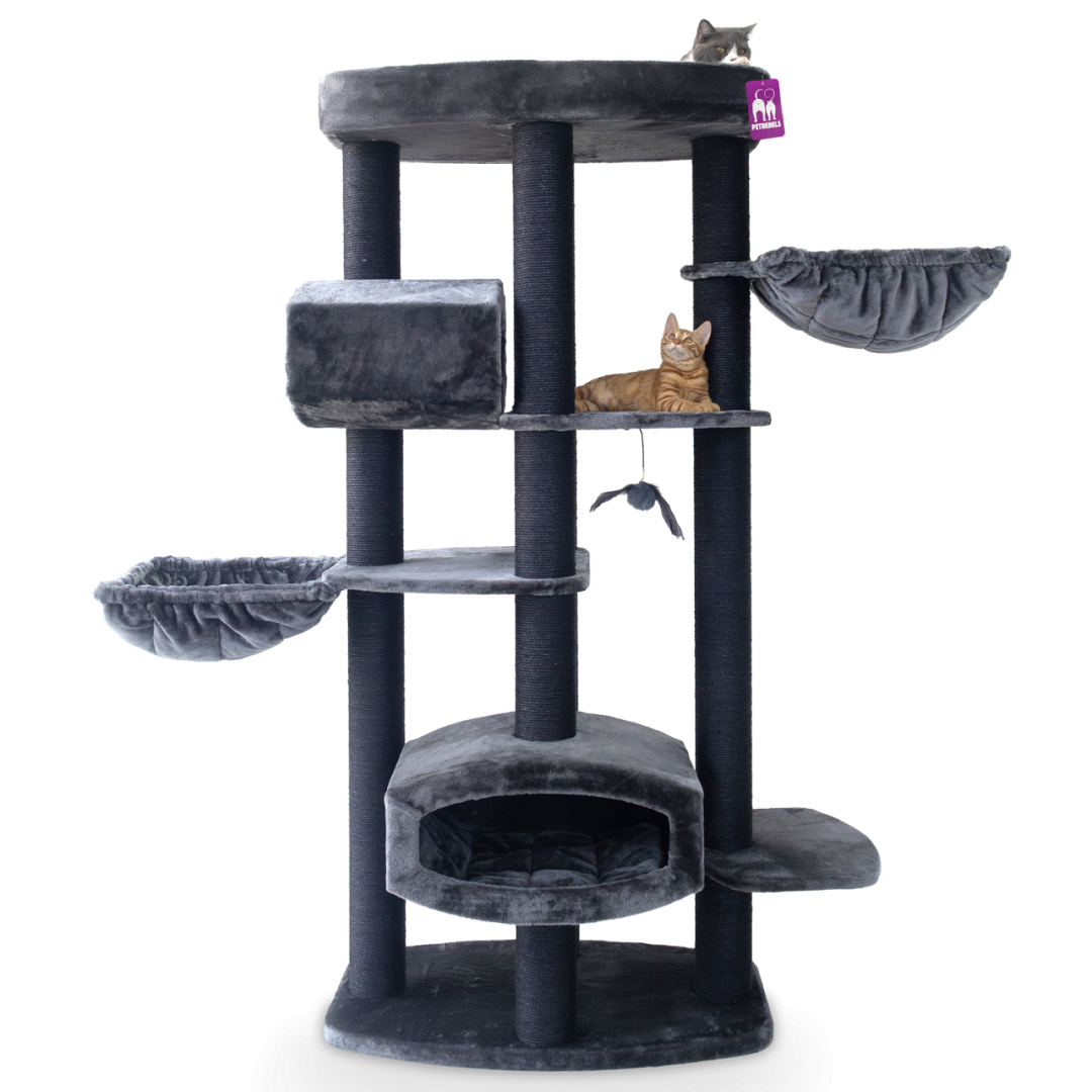 Krabpaal Drive 195 van Petrebels is een echte blikvanger; hij is wel 195 cm hoog, ruim en ideaal voor katten die van ontdekken, krabben én luieren houden. Je kat kan al zijn energie en stress kwijt door aan de krabstammen te krabben of door van het ene naar het andere plateau te springen. Voor rust en veiligheid kan je kat hier ook zijn hart ophalen, want dit krabmeubel heeft heel veel zachte en veilige slaapplekken – allemaal bekleed met de dikste en allerzachtste pluche. En hij is nog mooi ook, wat wil je nog meer?!