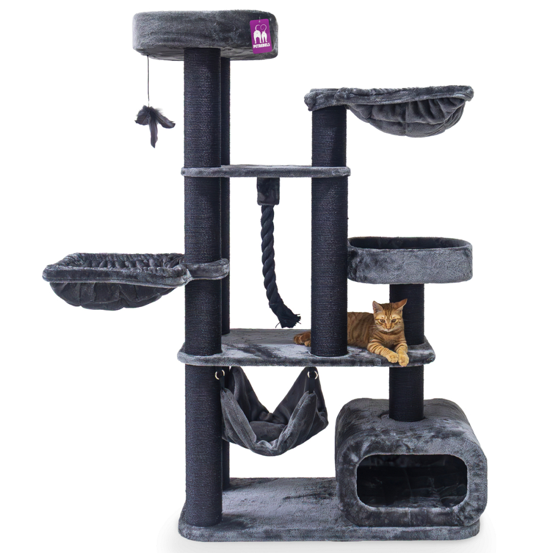De Petrebels Interstate 173 heeft alles wat je kat nodig heeft. Hij is hoog genoeg voor actieve en nieuwsgierige katten, stevig genoeg voor grote kattenrassen en zacht genoeg voor de gevoelige pluizenbol die zich graag even terugtrekt. Dit krabmeubel heeft lekker veel hoge krabstammen, ideaal om even uitgebreid aan te krabben en zo stress kwijt te raken. En de prachtige kleuren en ronde vormen zorgen ervoor dat deze krabpaal ook mooi staat in je huis. Een echte topper dus!