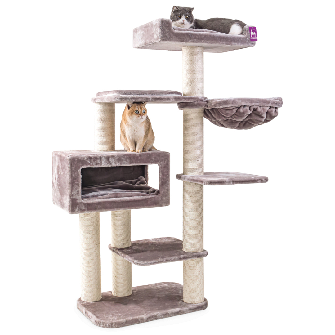 Groot krabmeubel met kattenhuis, hangmat en extra grote loungemand. Afm. 95 x 60 x 170 cm.