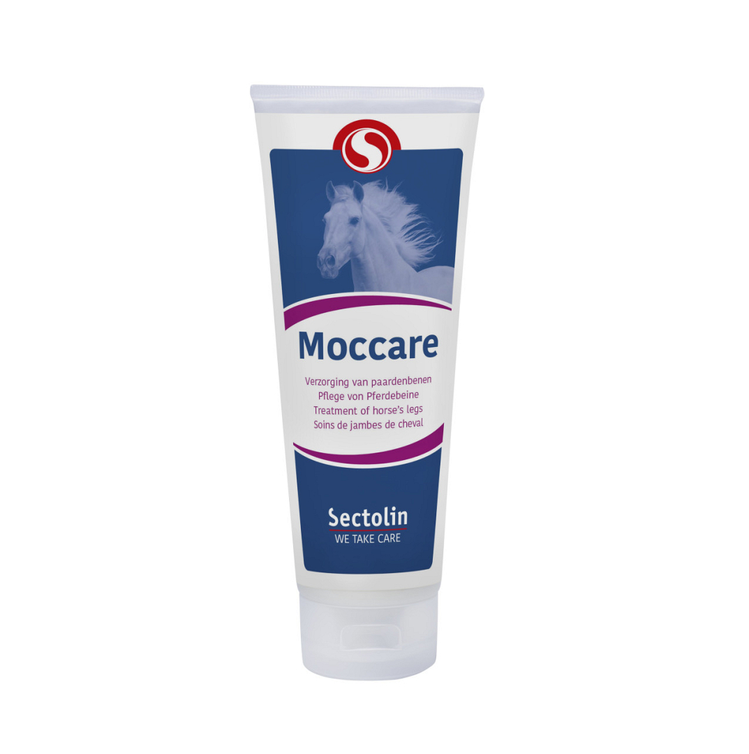 Moccare is ter verzorging van een ruwe of schrale huid in de kootholten en op het pijpbeen van een paard. De horizontale plooivorming van de huid in de kootholten houdt gemakkelijk vuil vast waardoor korstvorming en sterke vervuiling tengevolge van nattigheid in stal of zand ontstaat. Met een extract van sojabonenolie.